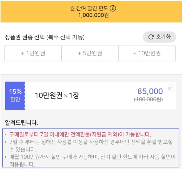 1. 구입한 상품권은 상품권을 구입한 앱을 통해서만 사용해야 상품권 사용이 적용됩니다.