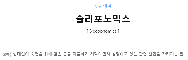 최근에는 그냥 자는게 아니라 잘 자는 "숙면"의 중요성이 커지면서 "슬리포노믹스"(Sleep/수면 + economics/경제)라는 용어도 등장하기 시작했습니다.