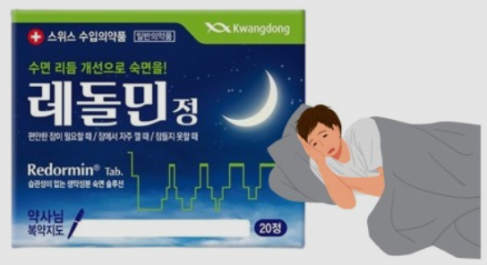 "생약성분으로 만든 레돌민"도 있습니다. 이는 갈초근과 호프추출물이 주성분으로 수면에 중요한 역할을 하는 멜라토닌 분비를 조절하여 잠이 잘 오도록 하는 약입니다. 부작용은 거의 없는 편이지만 그만큼 효과가 크지는 않아 만성 불면증을 갖고 계신 분들에게는 효과가 적은편입니다. 따라서 수면제나 항히스타민제를 복용했을때 부작용이 있는 분들께서 복용을 고려하시면 좋습니다.